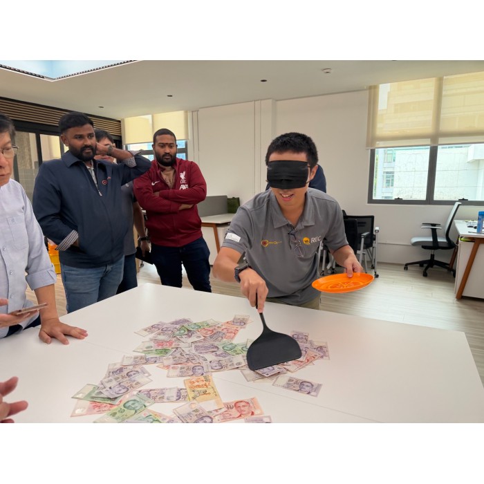 To add excitement to the celebration, colleagues participated in a fun money scooping game, where teams of three were blindfolded and challenged to scoop up money. The activity brought plenty of laughter and friendly competition, strengthening team spirit and camaraderie across the office.