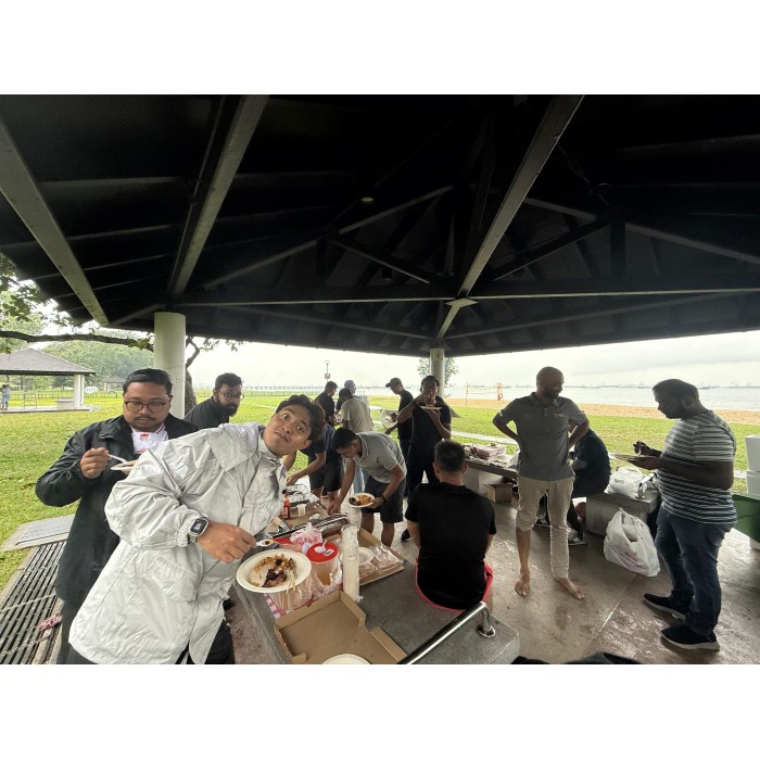 The gloomy weather could not dampen our spirits as Solargy took over East Coast Park! Persistent rainfall and overcast skies throughout the day may have cast doubts over whether the planned outdoor BBQ at ECP was going to happen, but nimble thinking from the organizers saved the day as they quickly acquired a portable BBQ pit and fired it up under the pavilion to ensure that the company could have a well-earned BBQ party to refuel for the crucial end of year period. Against the backdrop of damp sand, crashing waves, and grey skies, the familiar scent of good ol’ fashioned satay and BBQ chicken wings enveloped everyone with the tantalising promise of delicious comfort food.